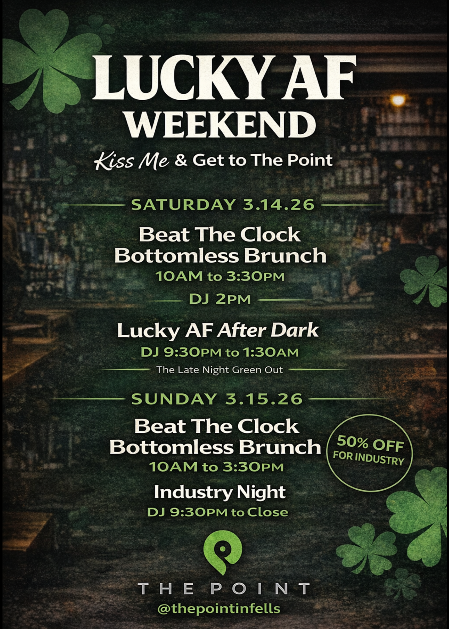 Get To The Point for specials and fun ALL WEEKEND!! 🍀🤩